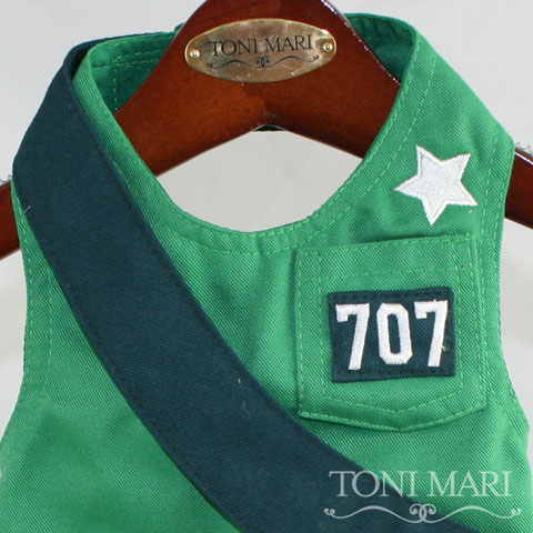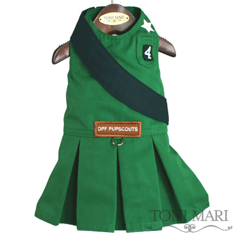 Does your PupScout look better in green? We DO have both looks - in tribute to the Girl Scouts (green uniform) or Brownies look (brown uniform). Your choice. Then start earning badges to add to your uniform. PLEASE let us know which city you're in, so we can add the correct number on your uniform AND measurements please - neck, girth and length. Our designer makes each uniform custom made.